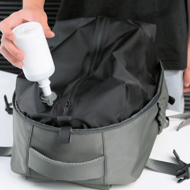 Featuring a built-in vacuum system, Airx bag minimizes volume to maximize capacity. Pack smarter, travel lighter, and never worry about overpacking.