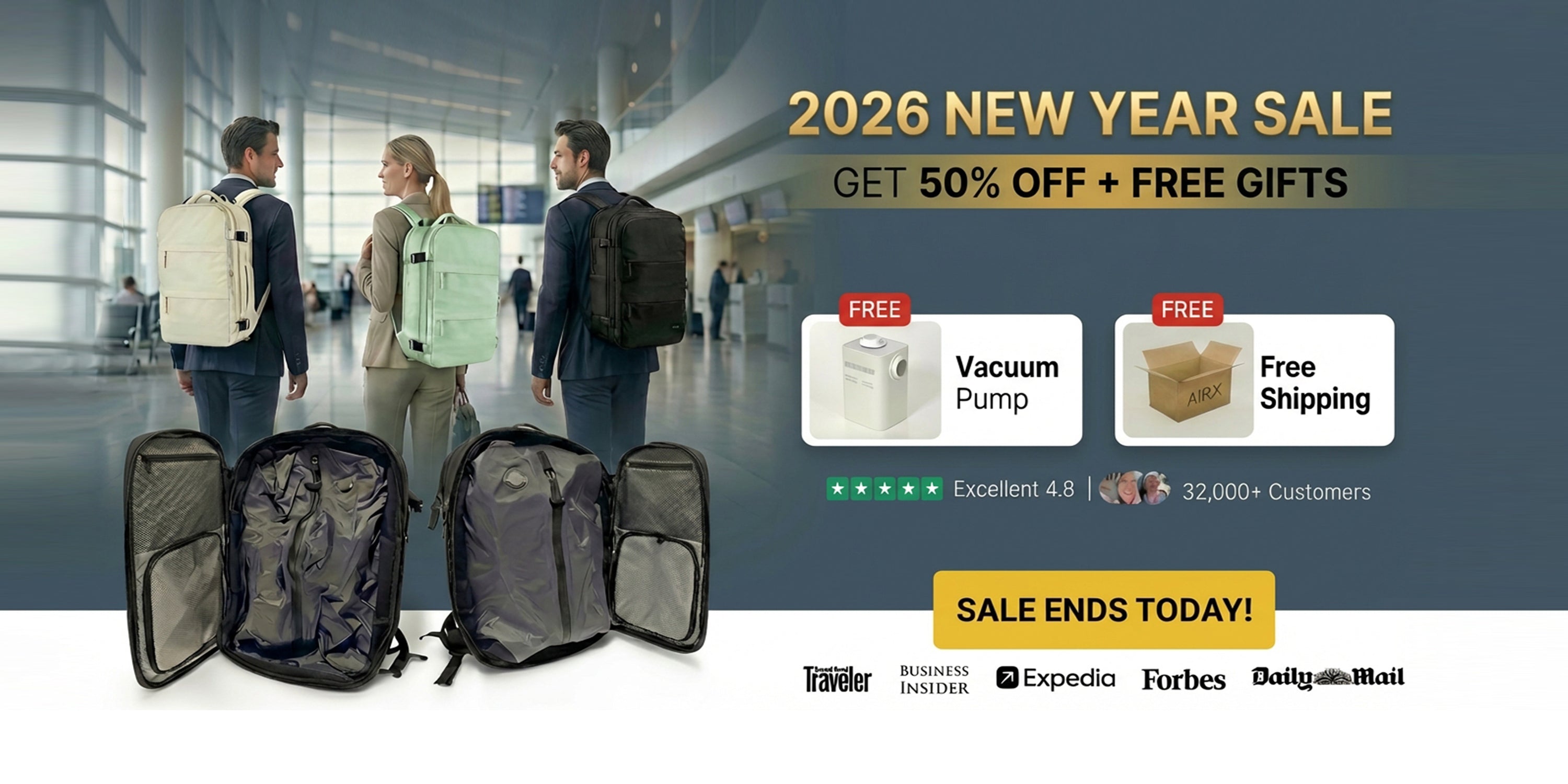 Absolutely. Every Airx Backpack includes a USB-rechargeable mini vacuum pump that fits neatly inside your bag for quick, cordless compression.