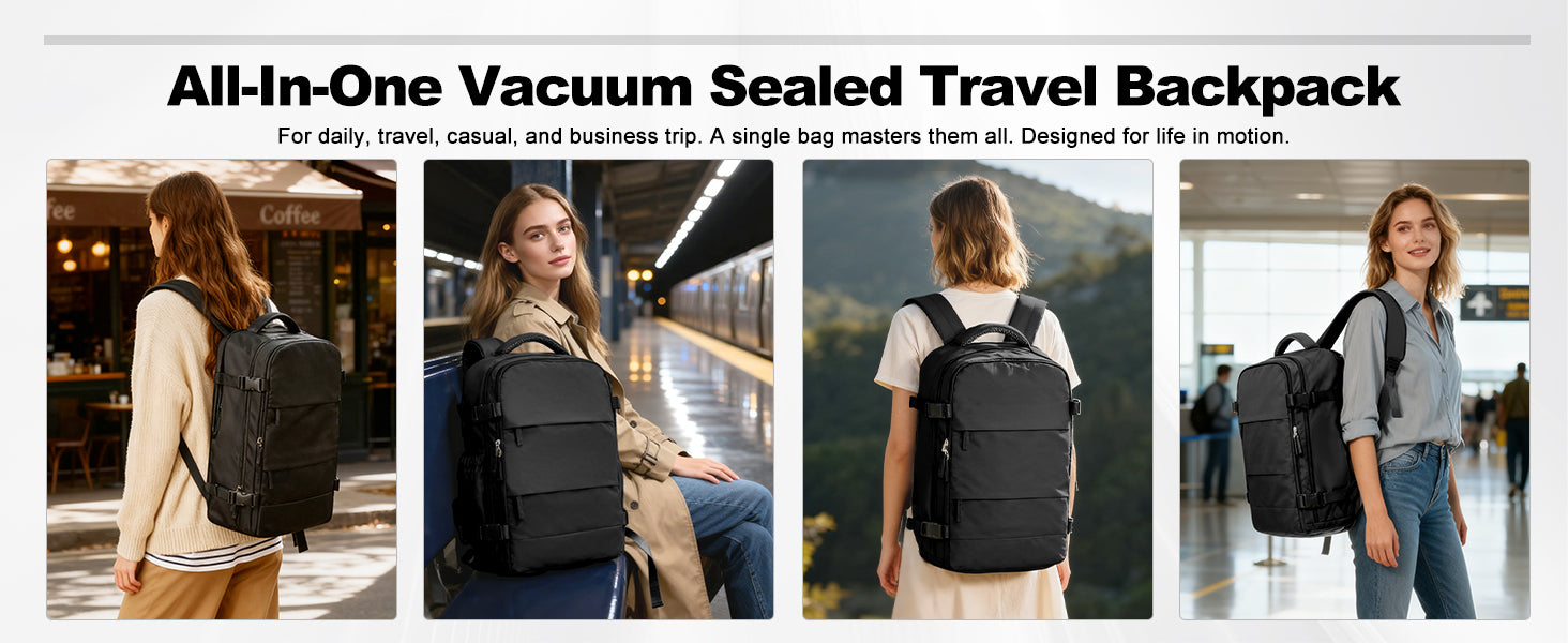 Absolutely. Every Airx Backpack includes a USB-rechargeable mini vacuum pump that fits neatly inside your bag for quick, cordless compression.