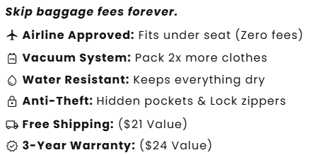 Maximize your journey, minimize the bulk. Airx empowers you to pack more and carry less, letting you glide from the boardroom to the departure gate. Experience the freedom of travel, compressed to perfection.